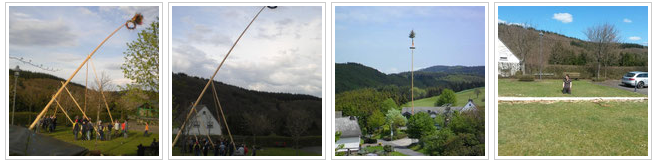 Zur Traditionspflege zählt vor allem das Maibaumstellen. Am 30. April wird auf dem Platz vor dem Gemeindehaus von den männlichen Mitgliedern des Vereins und tatkräftigen Helfern aus der Ortsgemeinde der Maibaum gestellt. In gewohnter Manier wird der Baum innerhalb von gut zwei Stunden mit Muskelkraft in die Höhe gedrückt. Diese Aktion fordert tagelange Vorbereitung der Vereinsmitglieder. Der Baum muss im Wald gesucht und gefällt und danach auf dem Platz vor dem Gemeindehaus geschält werden. Die Spitze des Baumes muss vorbereitet, der Kranz gebunden und beides geschmückt werden.